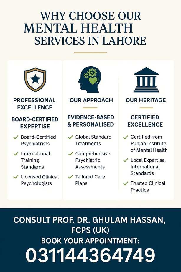 Expert Psychiatric Care with Board-Certified Specialists in Lahore. Certified from Punjab Institute of Mental Health